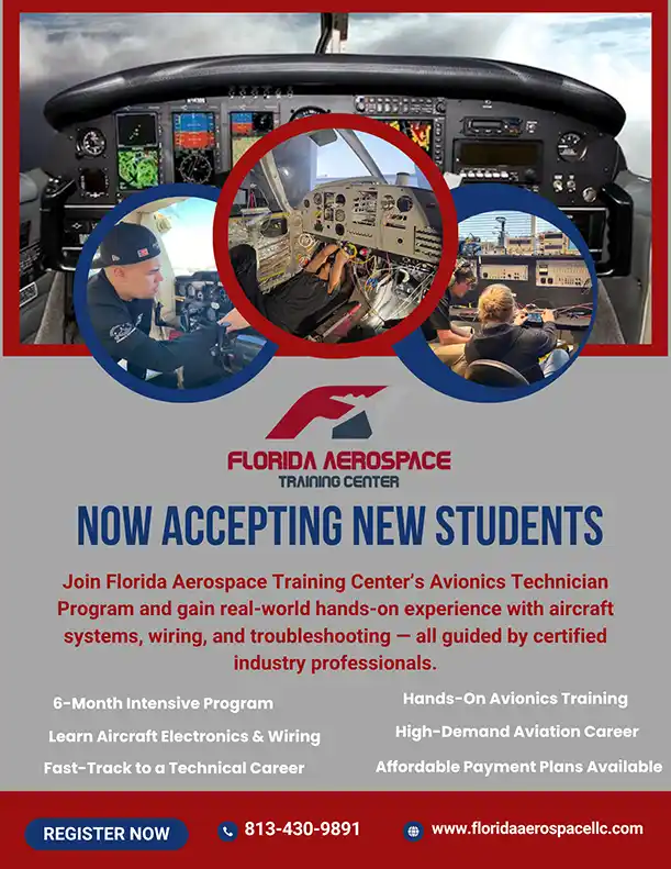 At Florida Aerospace Avionics Technician Training Center, our Avionics Technician program teaches students the proper use of basic tools and test equipment, electronic theory, and provides hands-on training for the installation, troubleshooting, and repair of electronic and avionics systems.